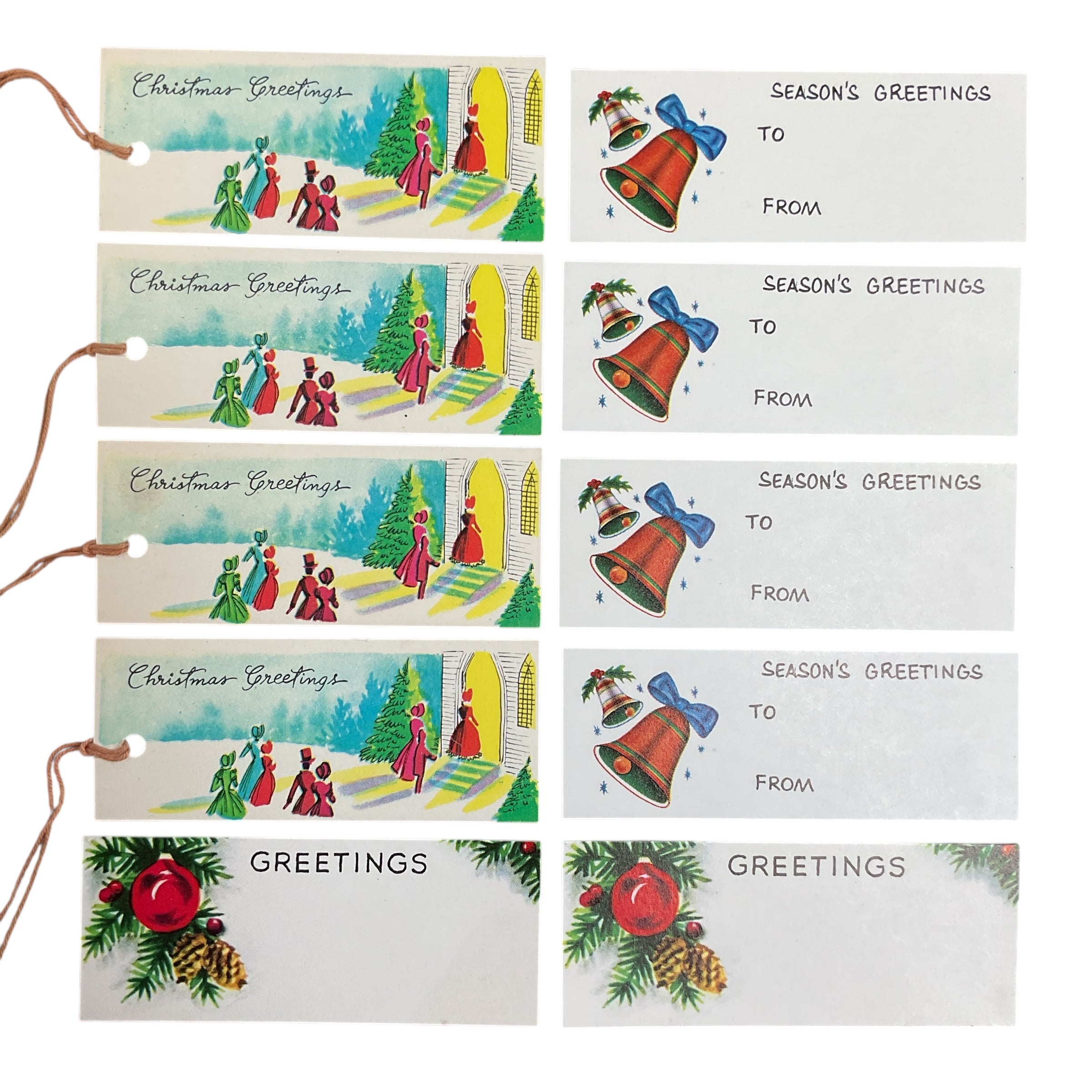 Lot of 10 vintage Christmas gift name tag cards. Tags are all unused.