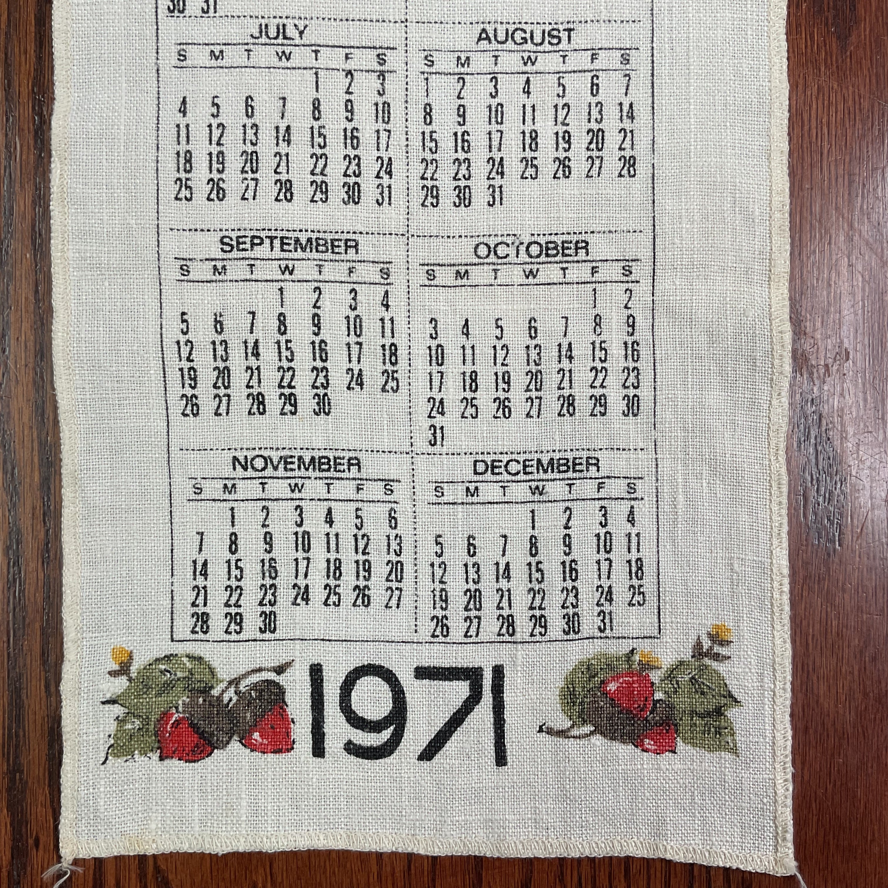 Vintage 1971 Kitchen Calendar Linen Tea Towel.