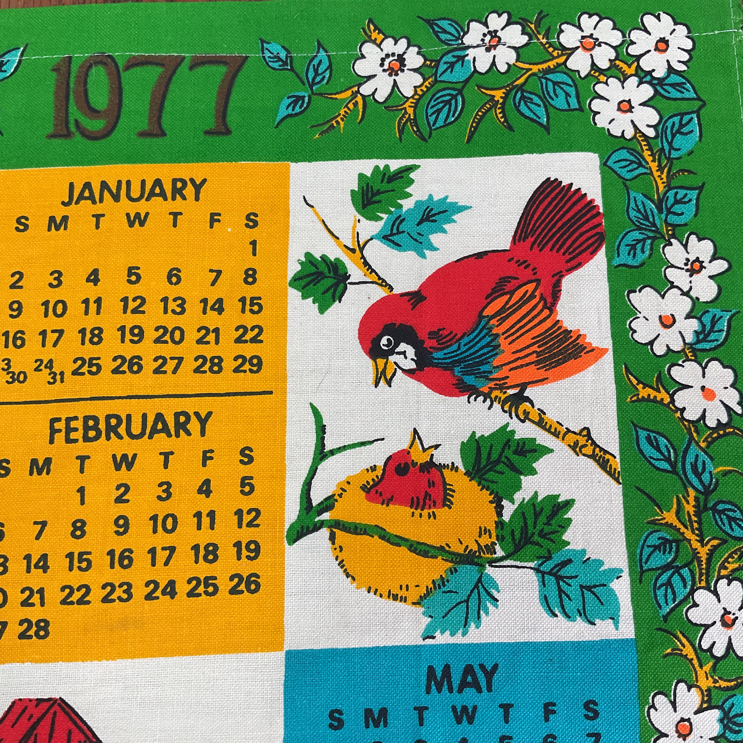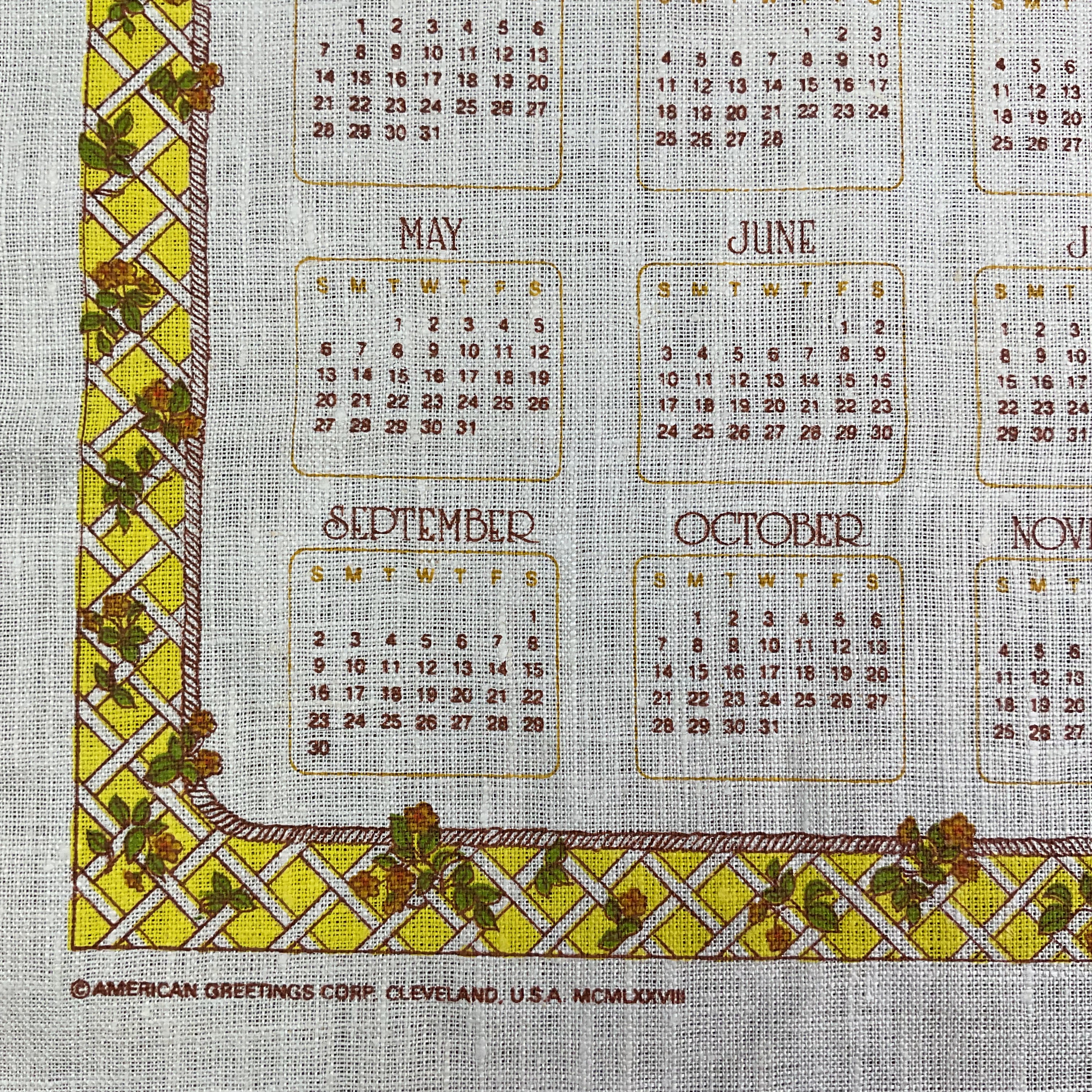 Vintage 1977 Kitchen Calendar Linen Tea Towel.