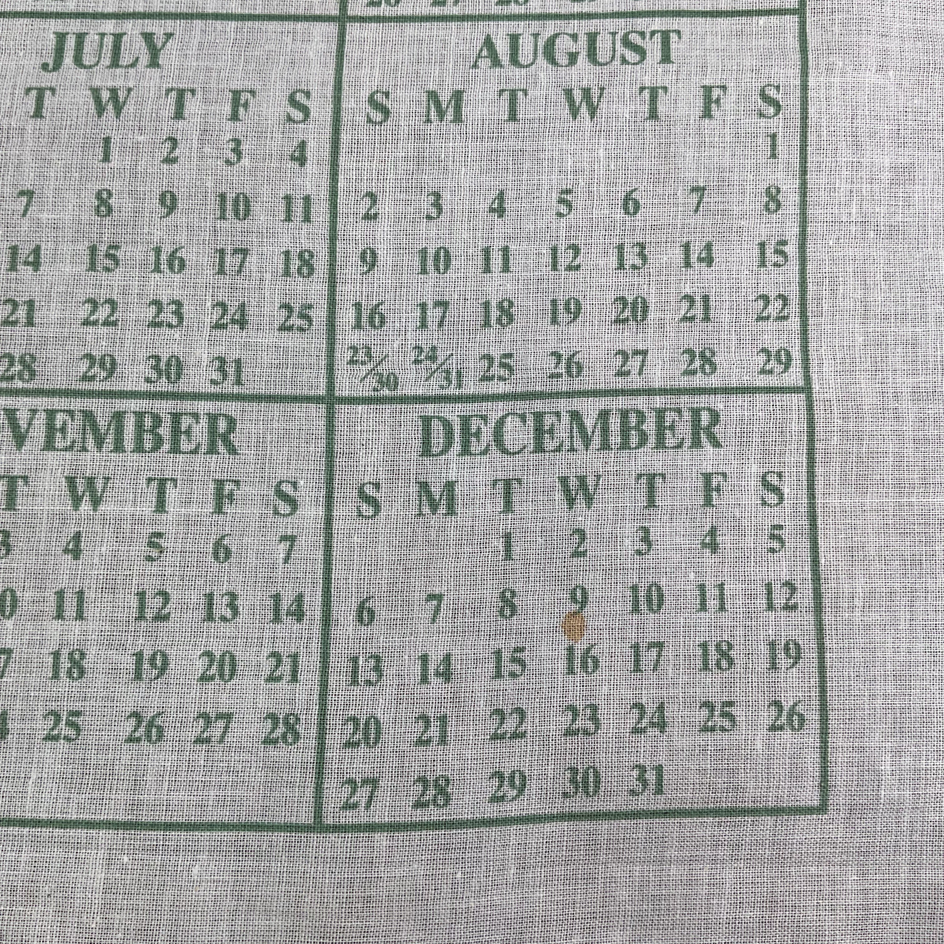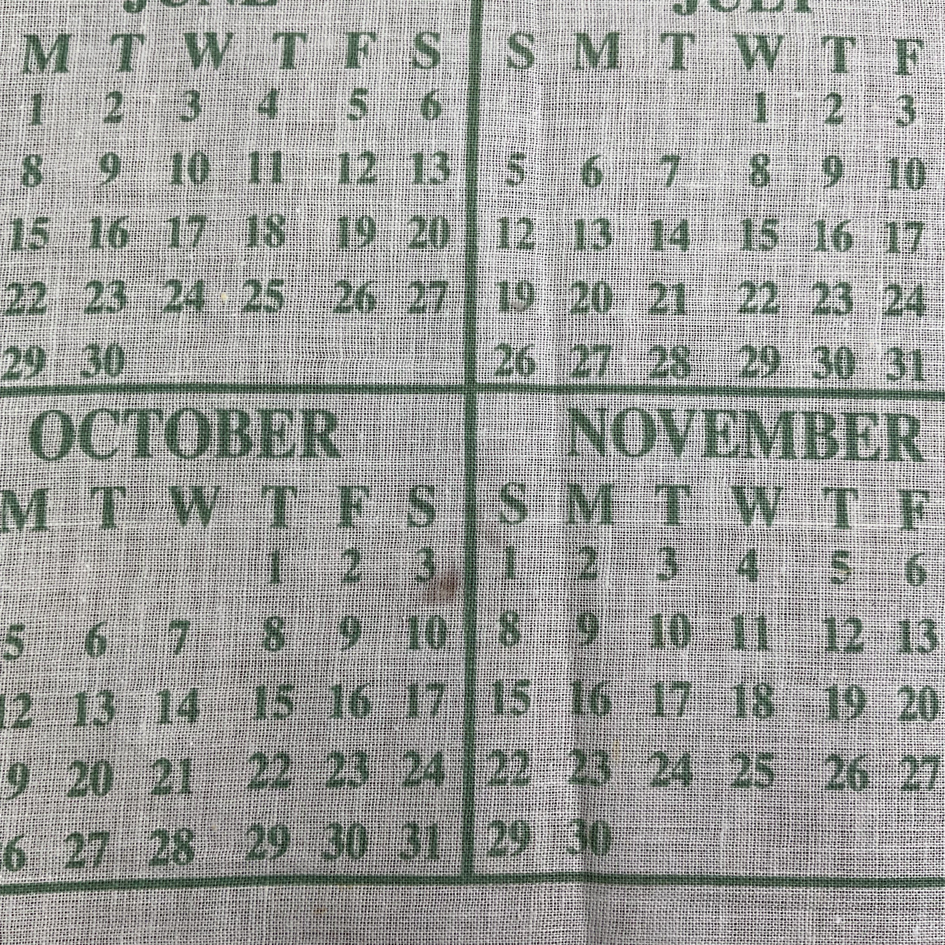 Vintage 1988 Kitchen Calendar Tea Towel.