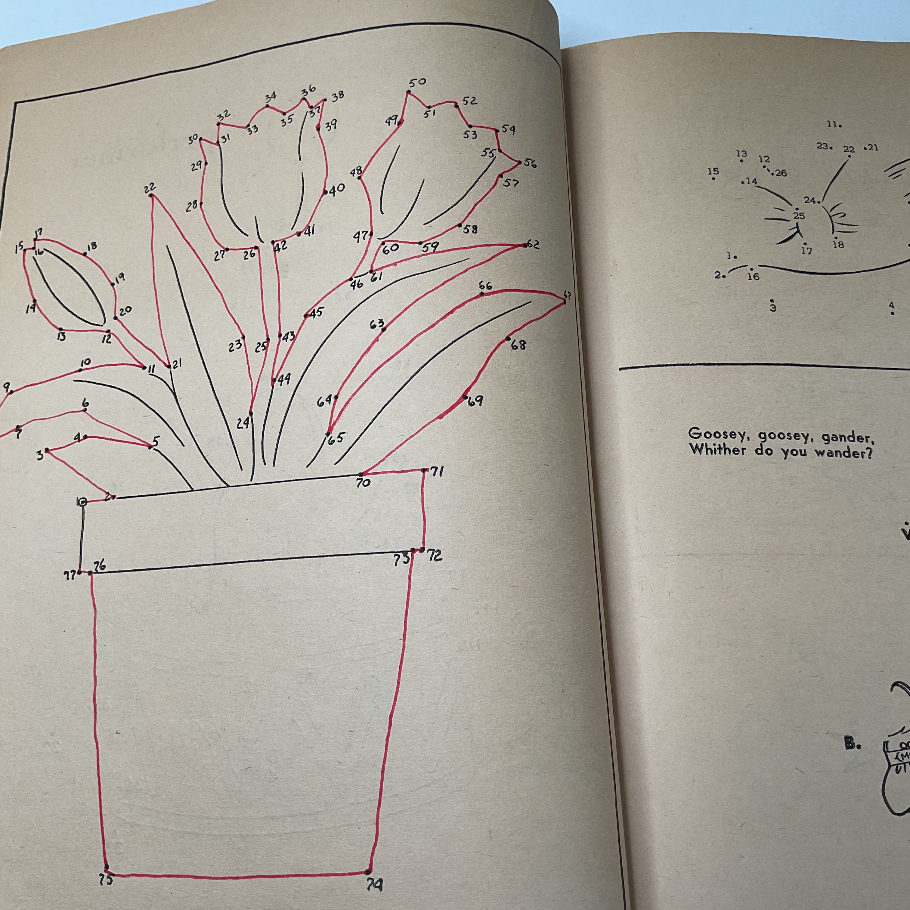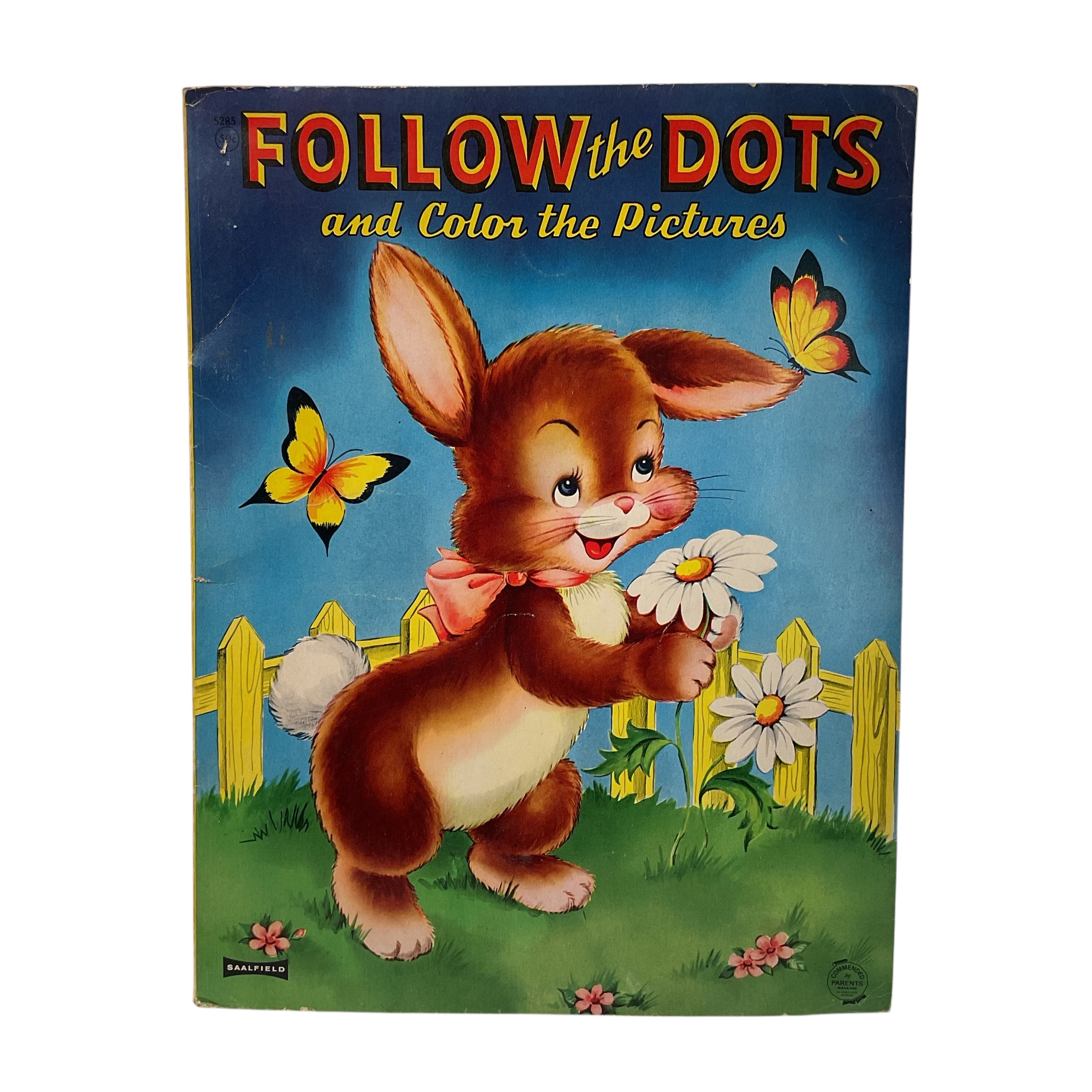 Vintage Saalfield Oversided Coloring Book. Follow the Dots and color the Pictures. Circa late 1940s. Book number 5285.
