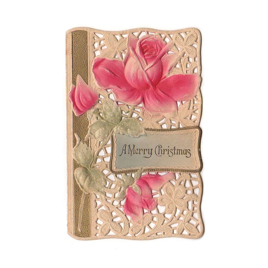 Antique Merry Christmas Die Cut Embossed Victorian Card