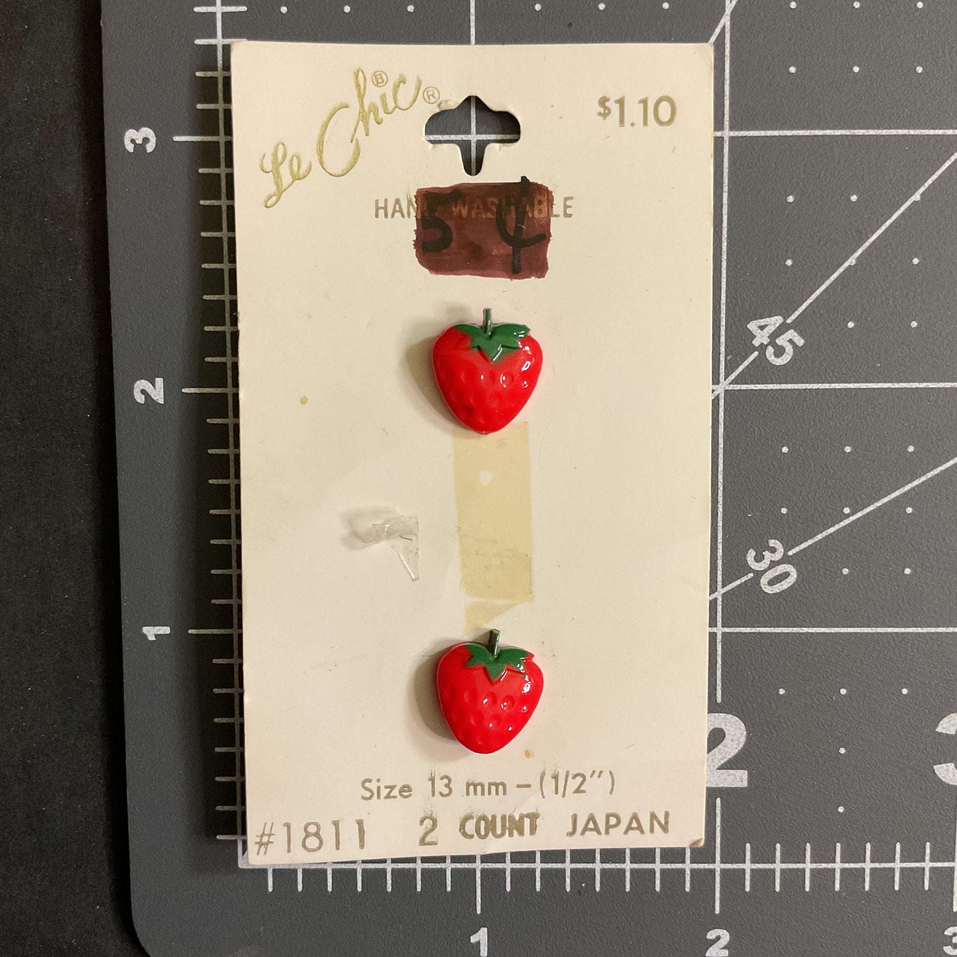 Le Chic Novelty Strawberry Shank Buttons 2 on Card No 1811