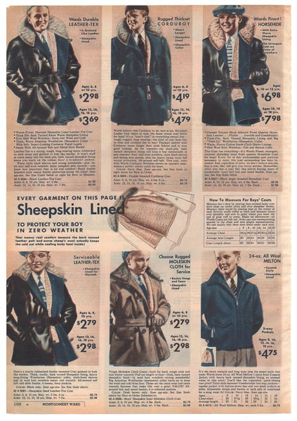 Vintage original 1936 Catalog Page featuring Mens leather sports jackets and other mens coats.
