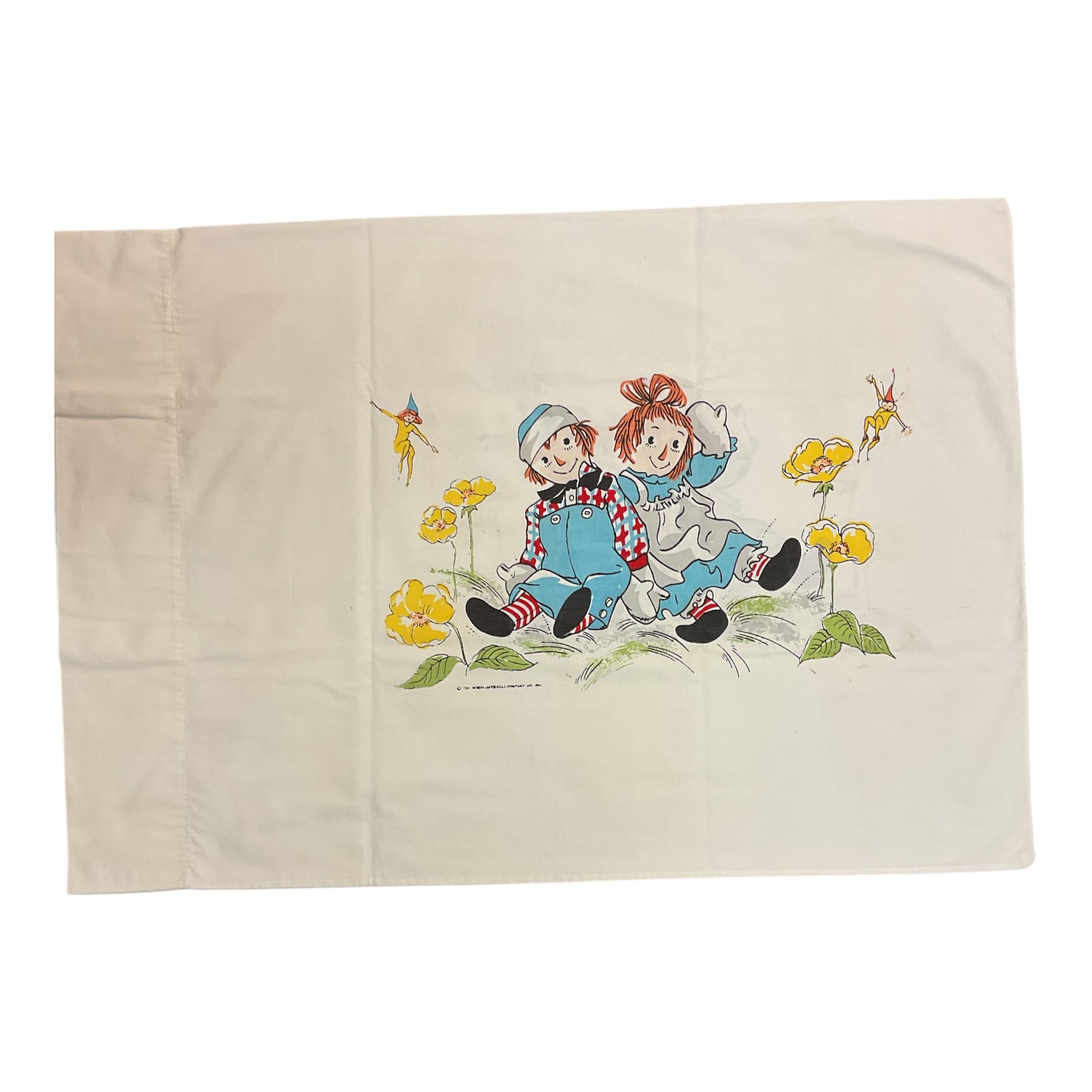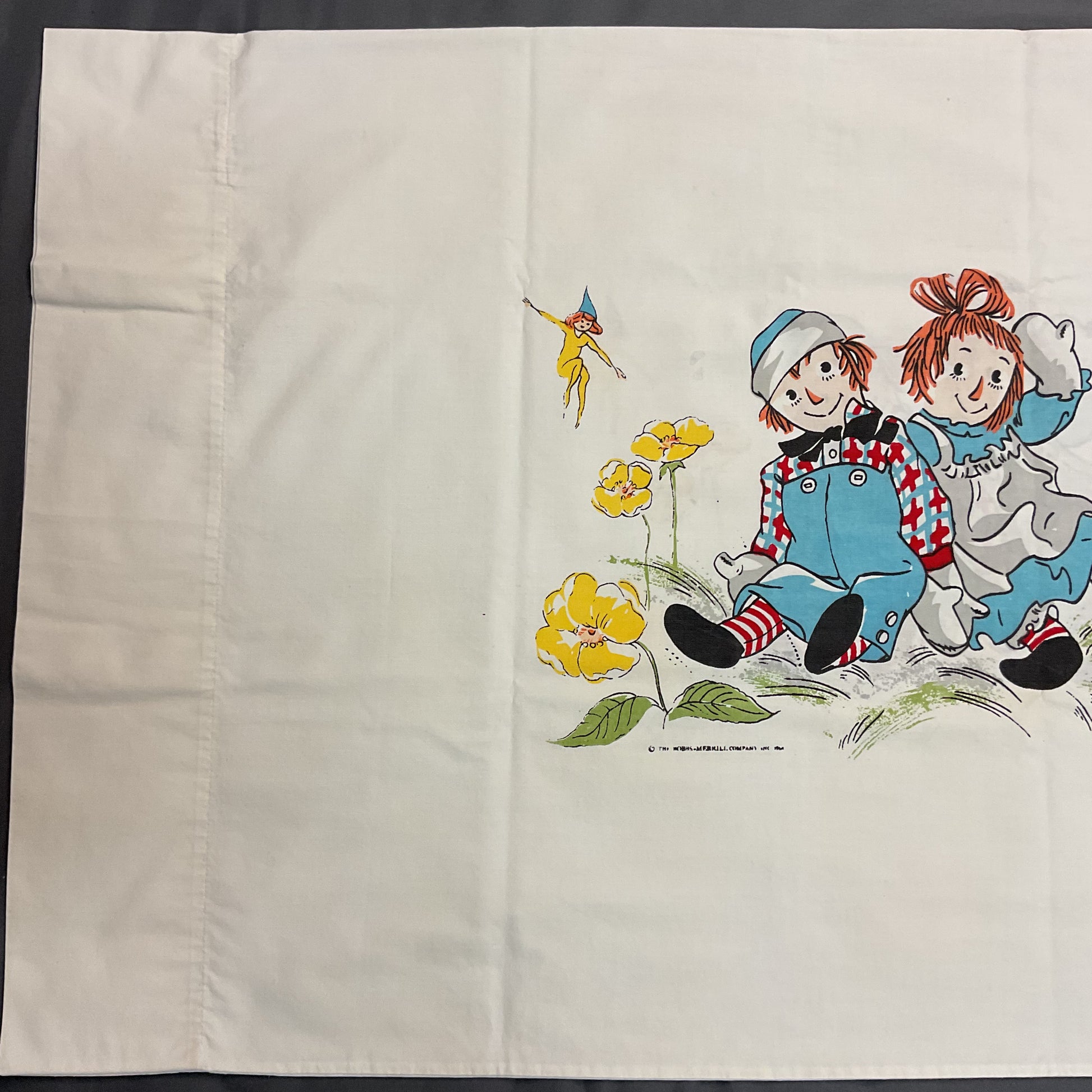 Vintage circa 1960s Raggedy Ann and Andy pillowcase.