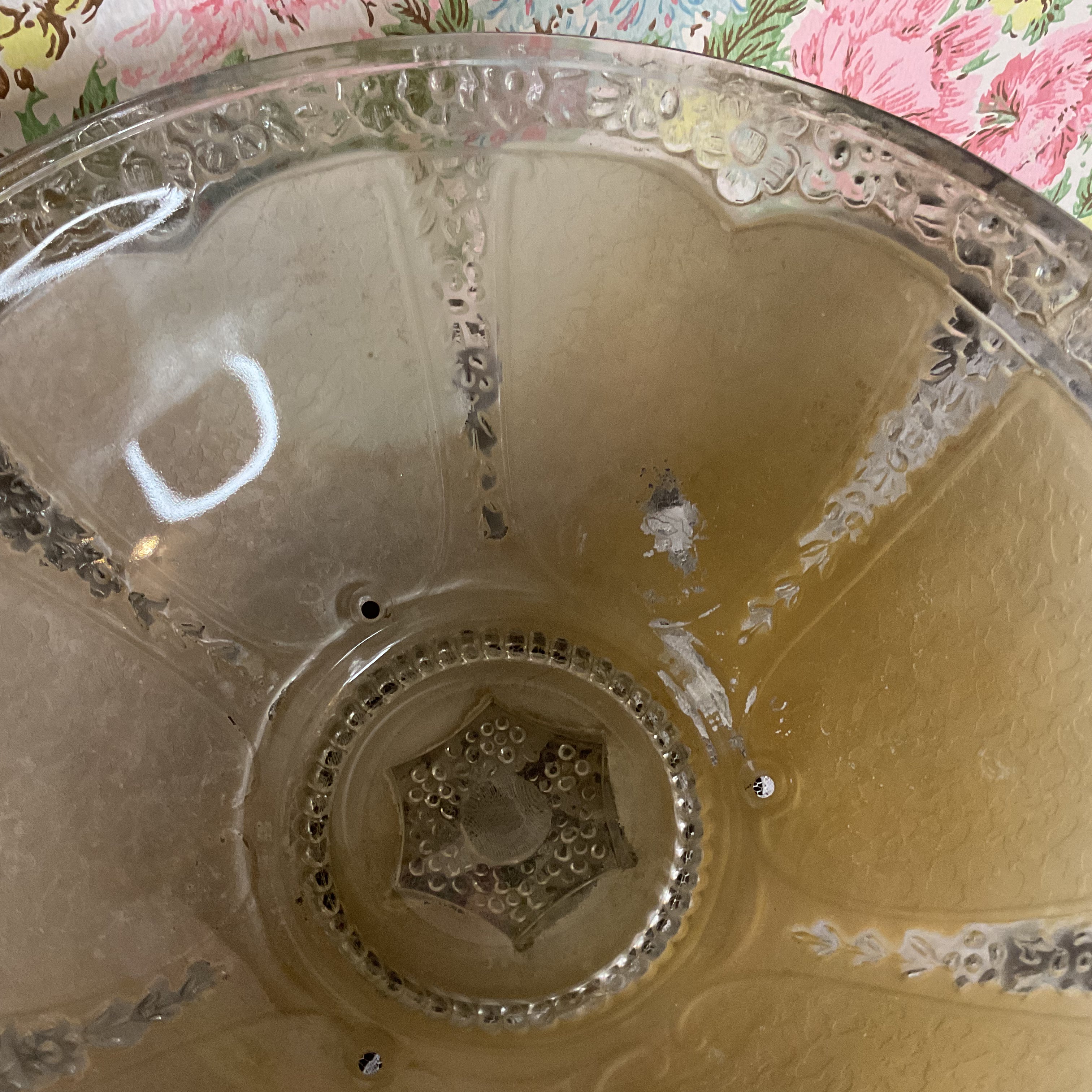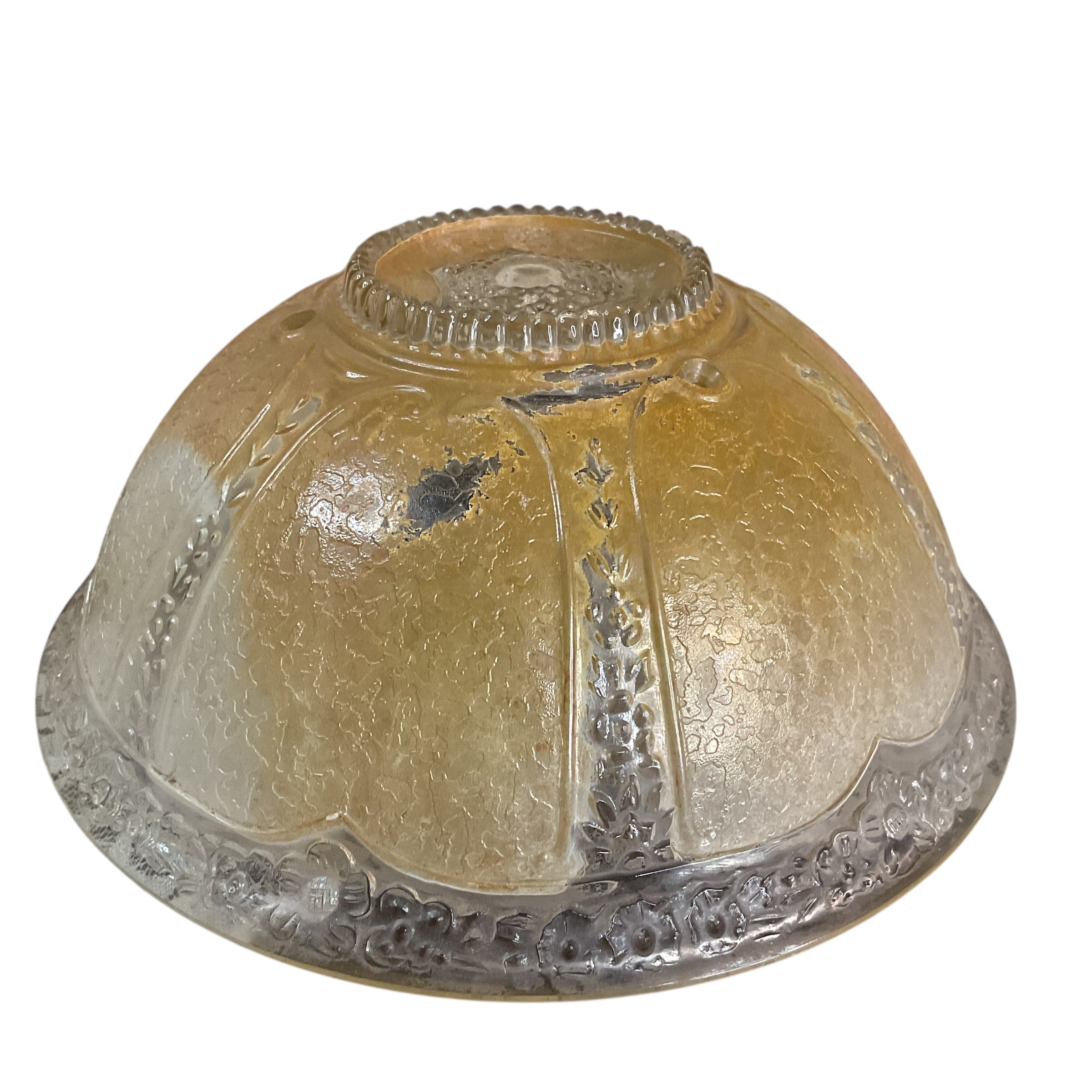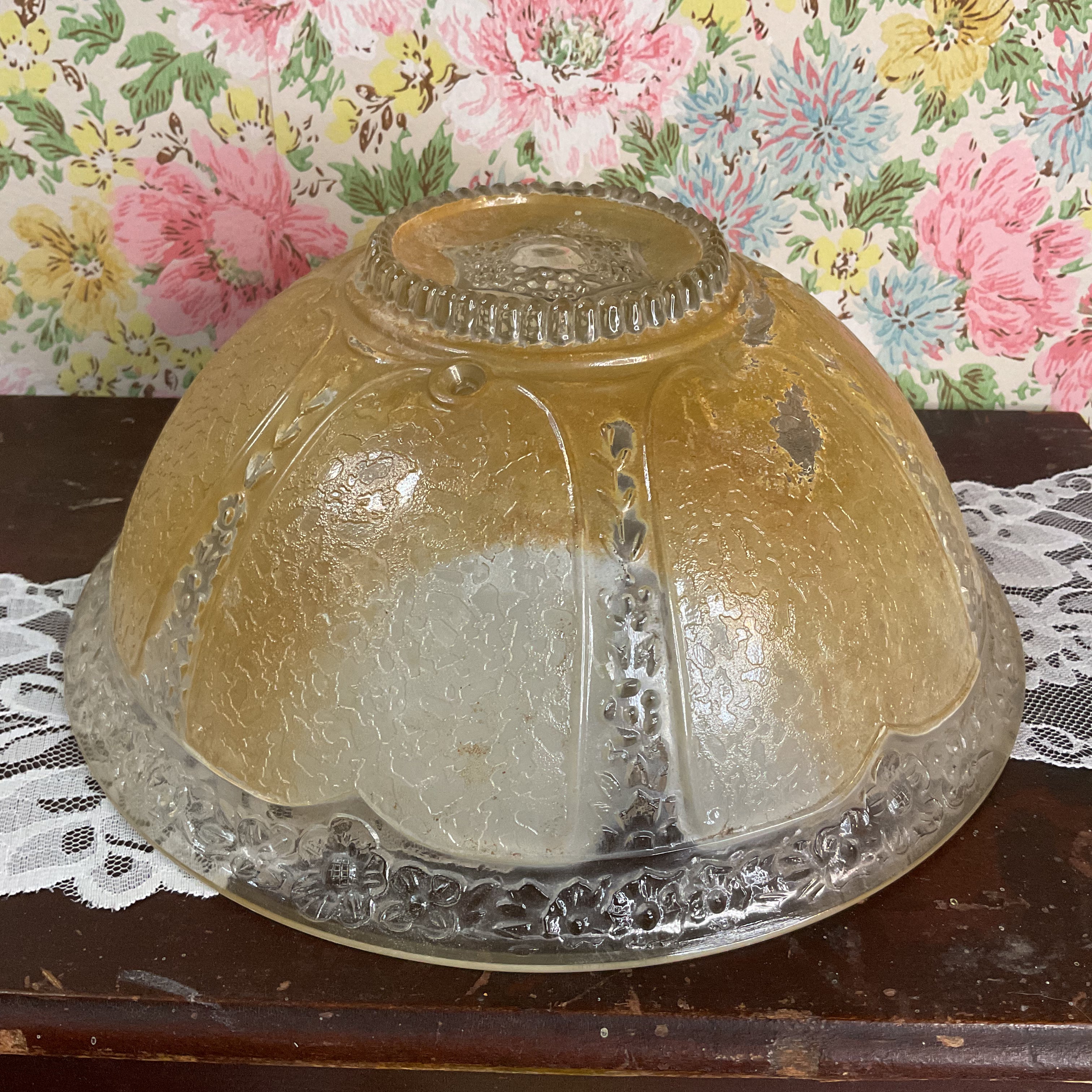 Vintage Frosted and Clear Pressed Glass Light Shade. Has one 1/2” diameter hole at the center.