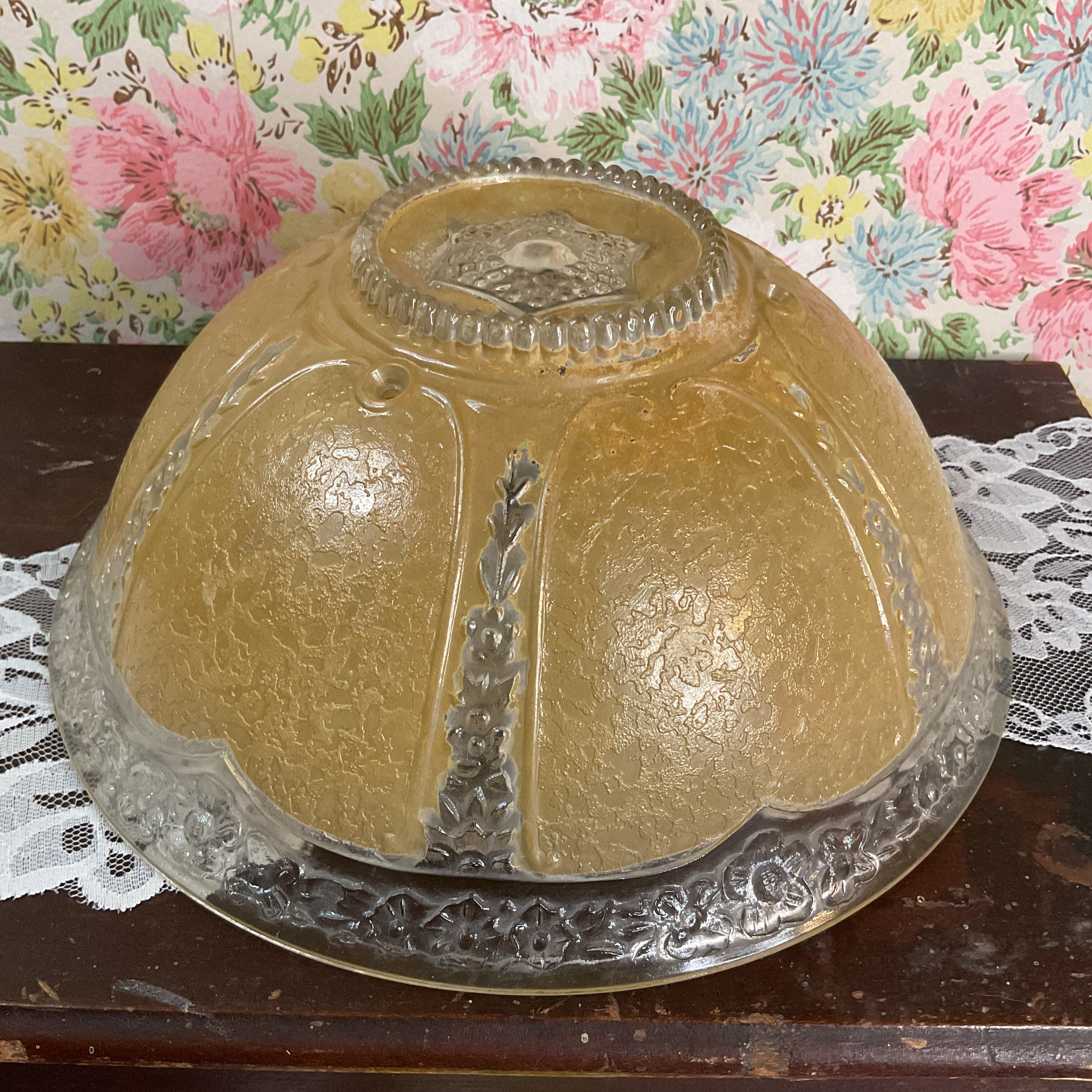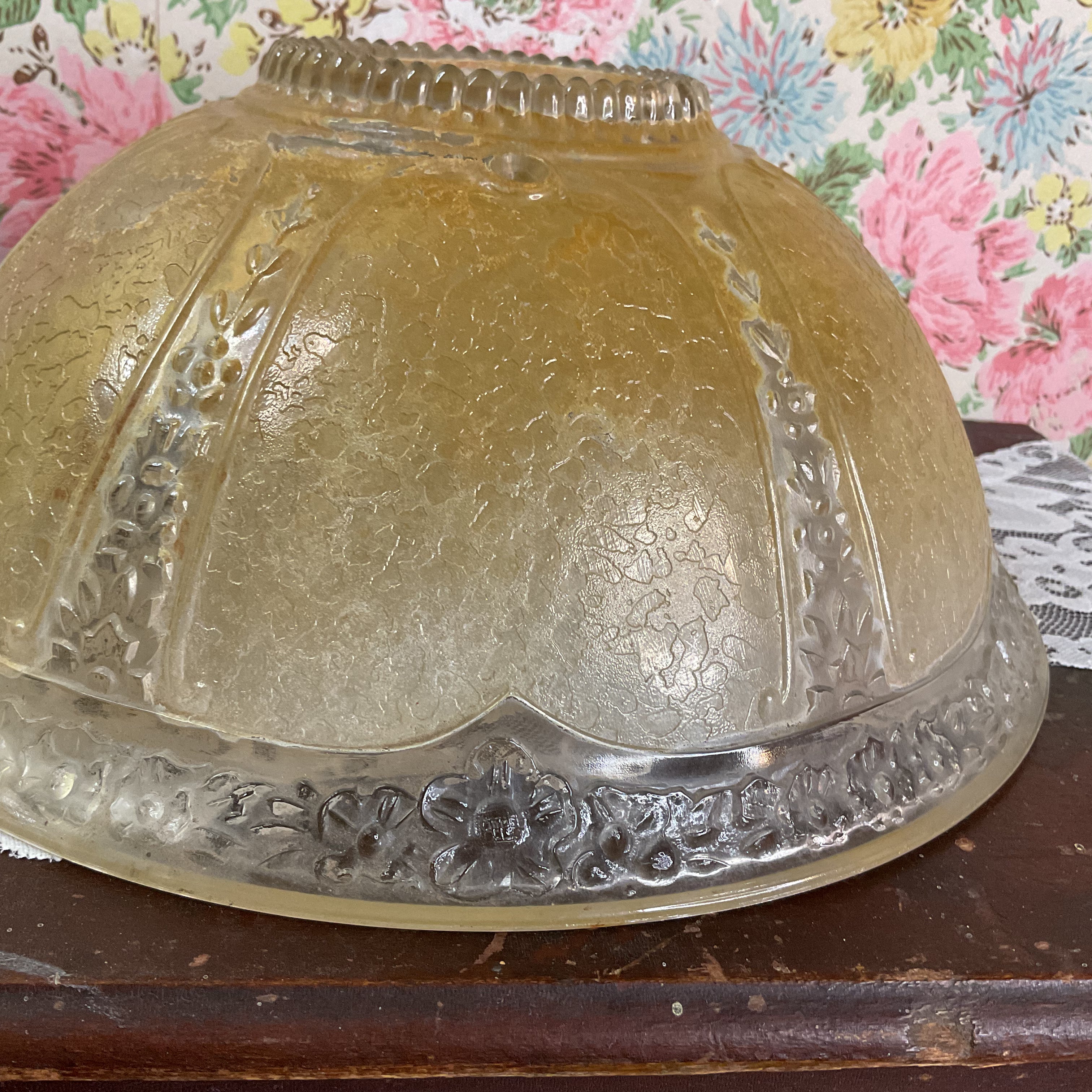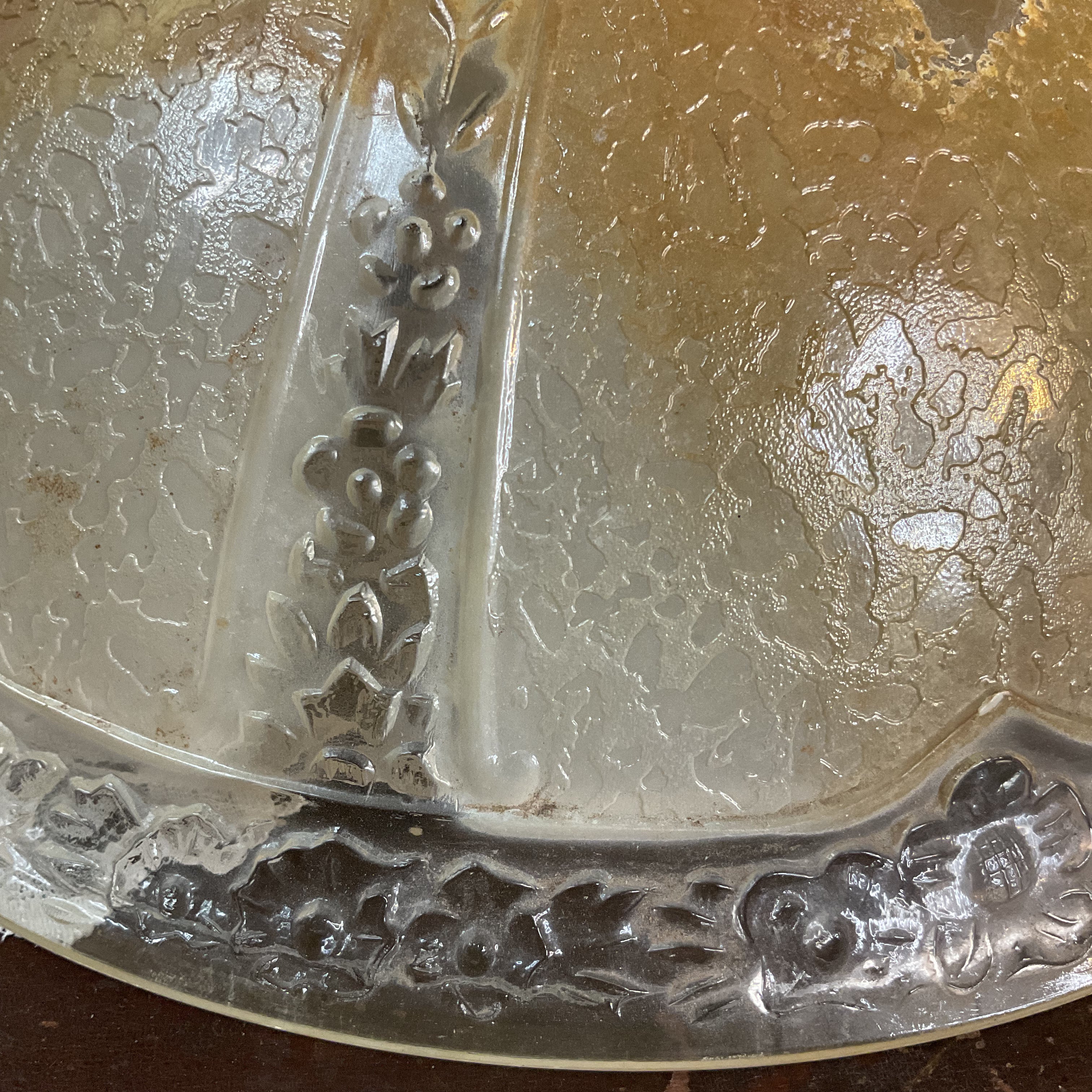 Vintage Frosted and Clear Pressed Glass Light Shade. Has one 1/2” diameter hole at the center.