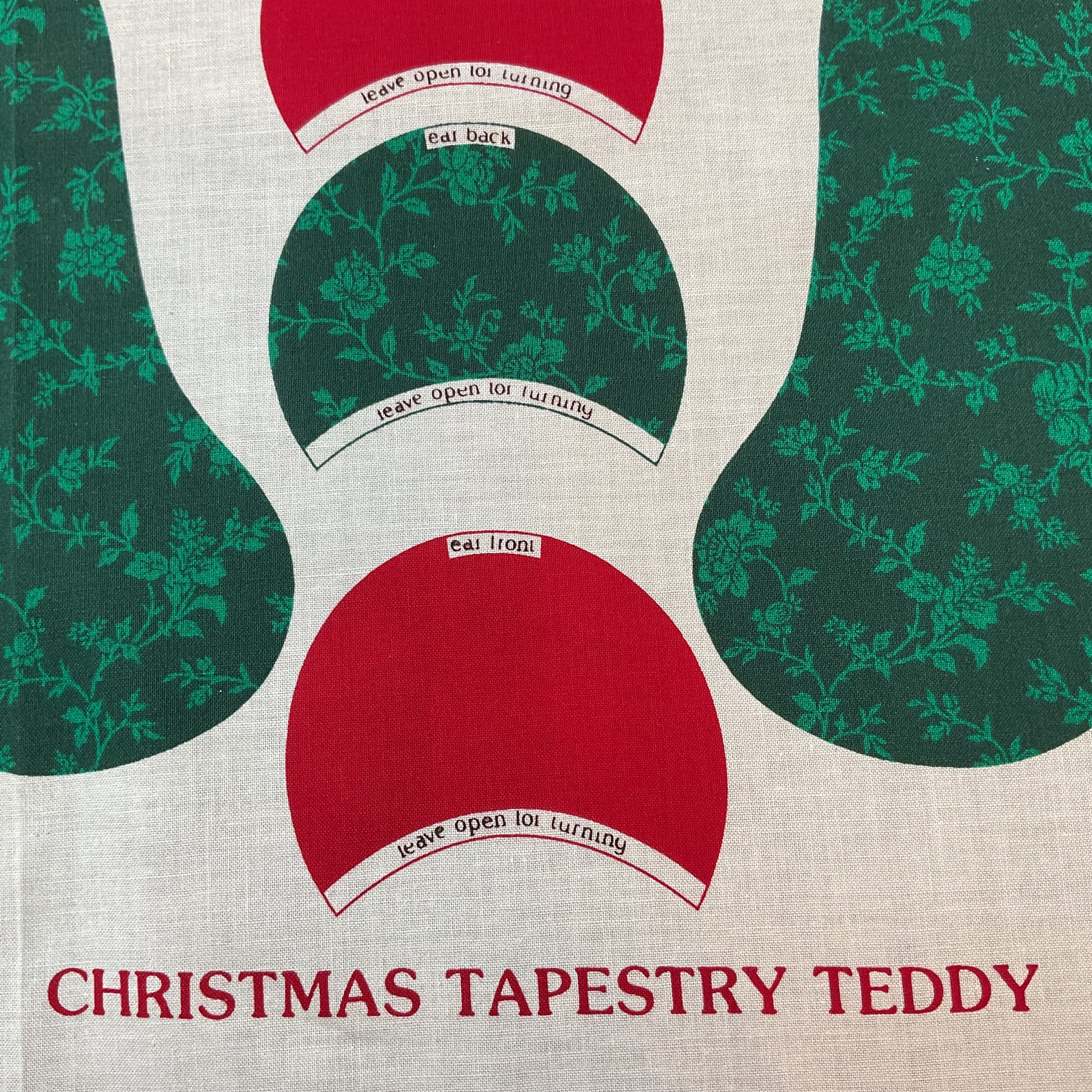 Vintage Cranston Christmas Tapestry Teddy Bear Cut and Sew Fabric Panel