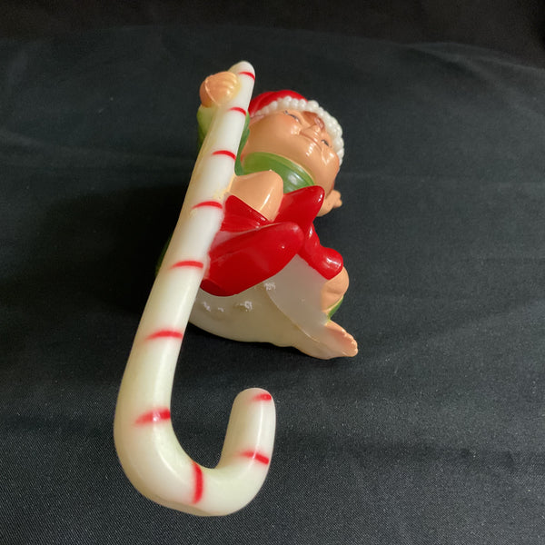 Measures about 6 3/4” in length from the top of his head to the bottom of the candy cane.