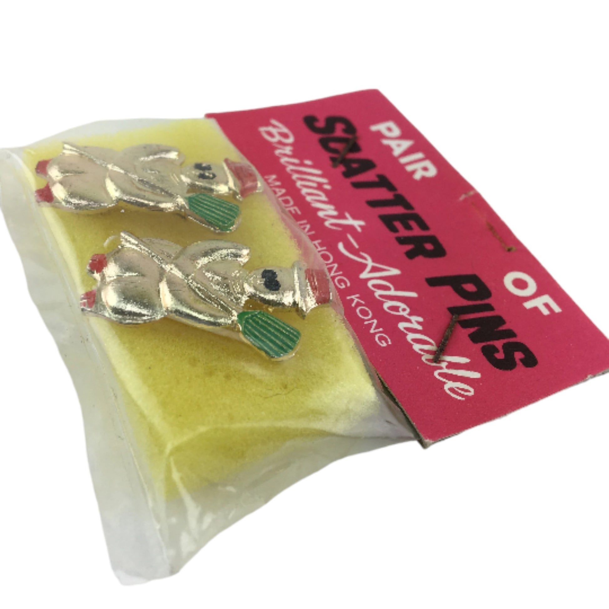 Vintage Snowman Scatter Pins Pair NOS Christmas Jewelry